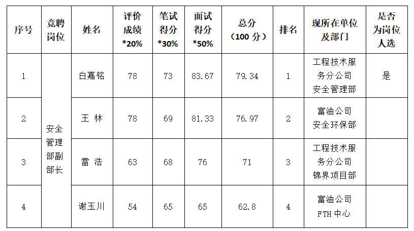 神木煤化工產(chǎn)業(yè)有限公司工程技術(shù)服務(wù)分公司 中層管理人員公開競聘結(jié)果公示